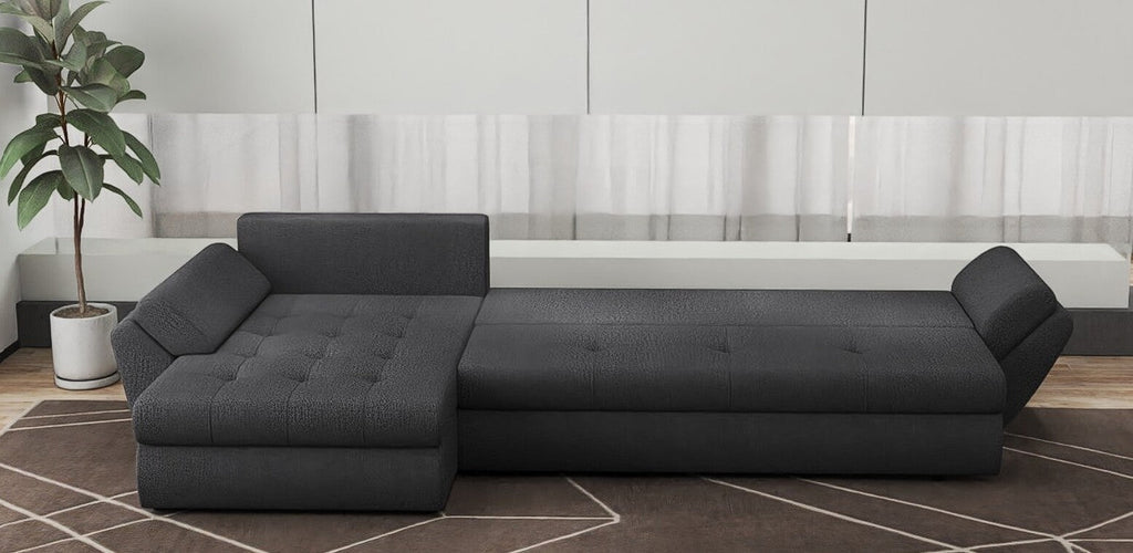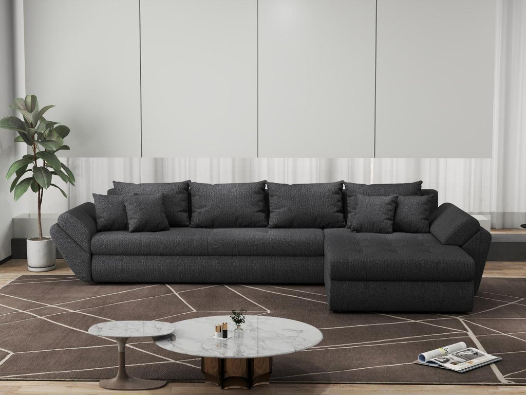 Colțar extensibil dumonde cu ladă de depozitare si sezut confortabil din spuma HR, Loana XL Enjoy Grafit II 335x185 cm