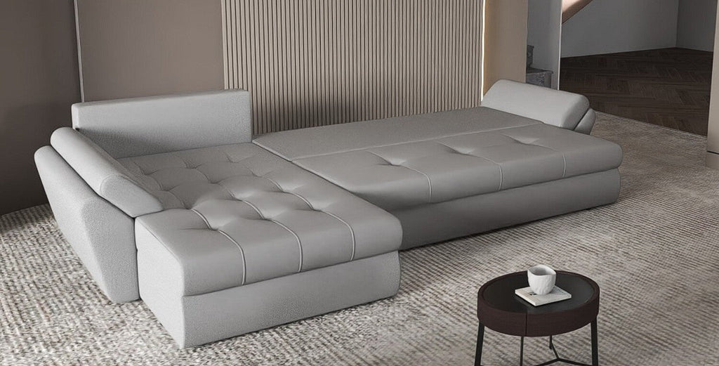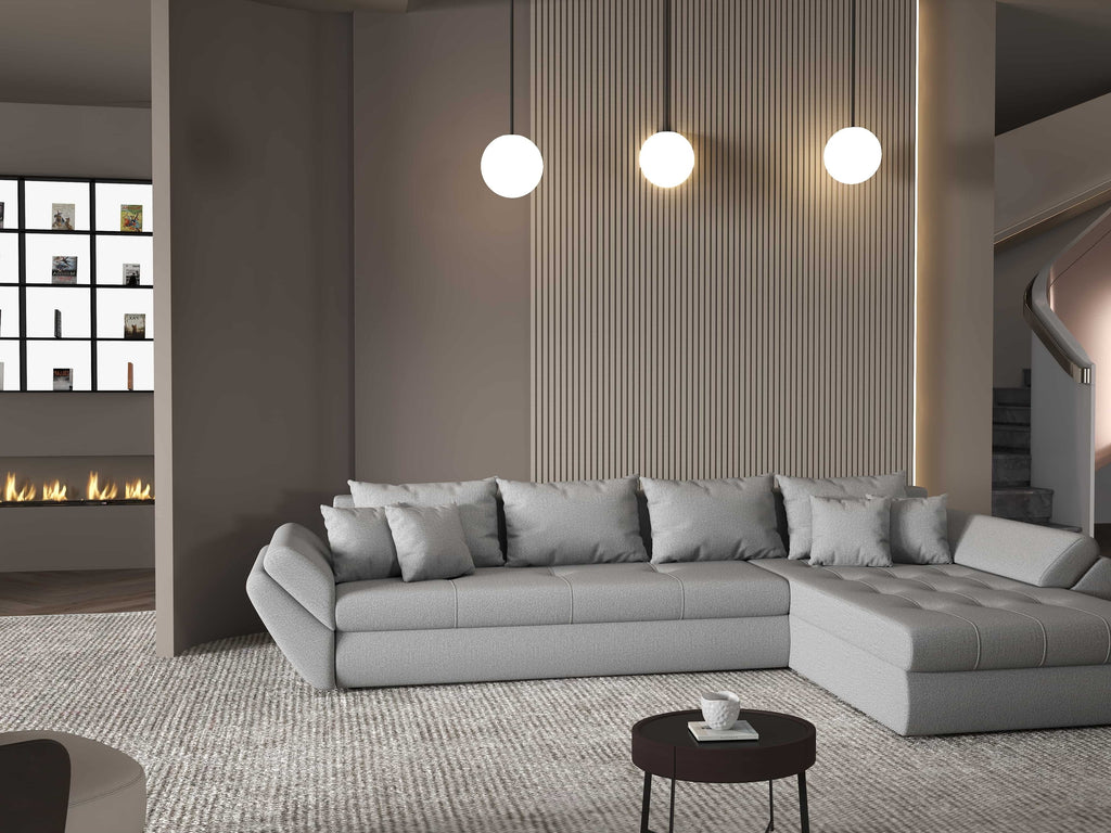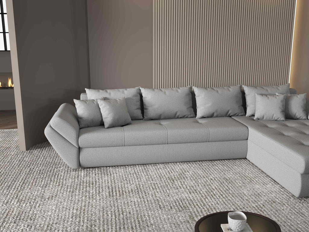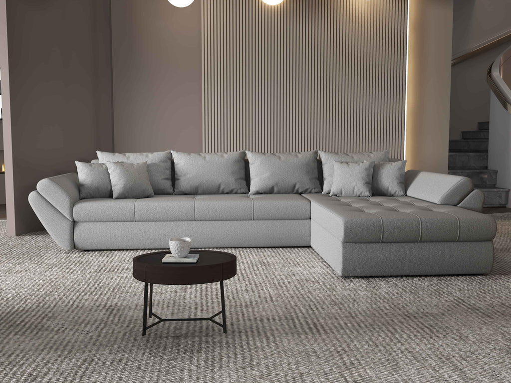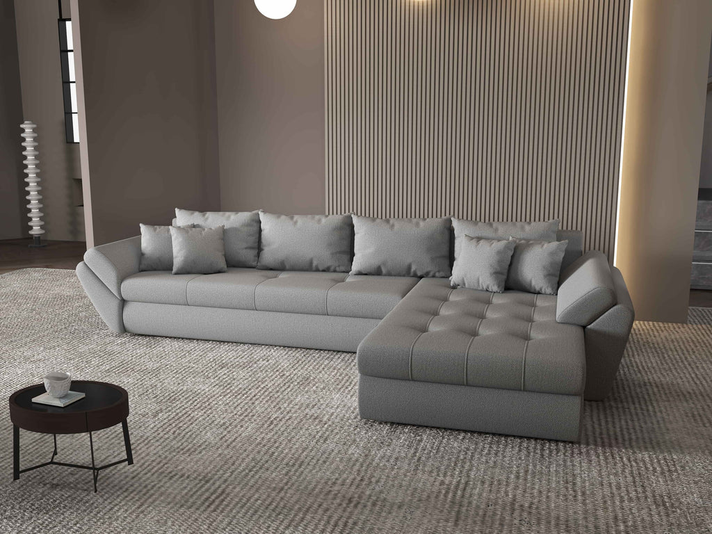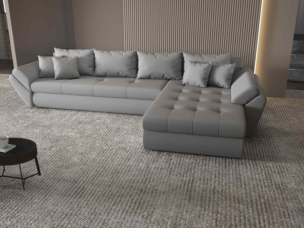 Colțar extensibil dumonde cu ladă de depozitare si sezut confortabil din spuma HR, Loana XL Enjoy Gri II 335x185 cm