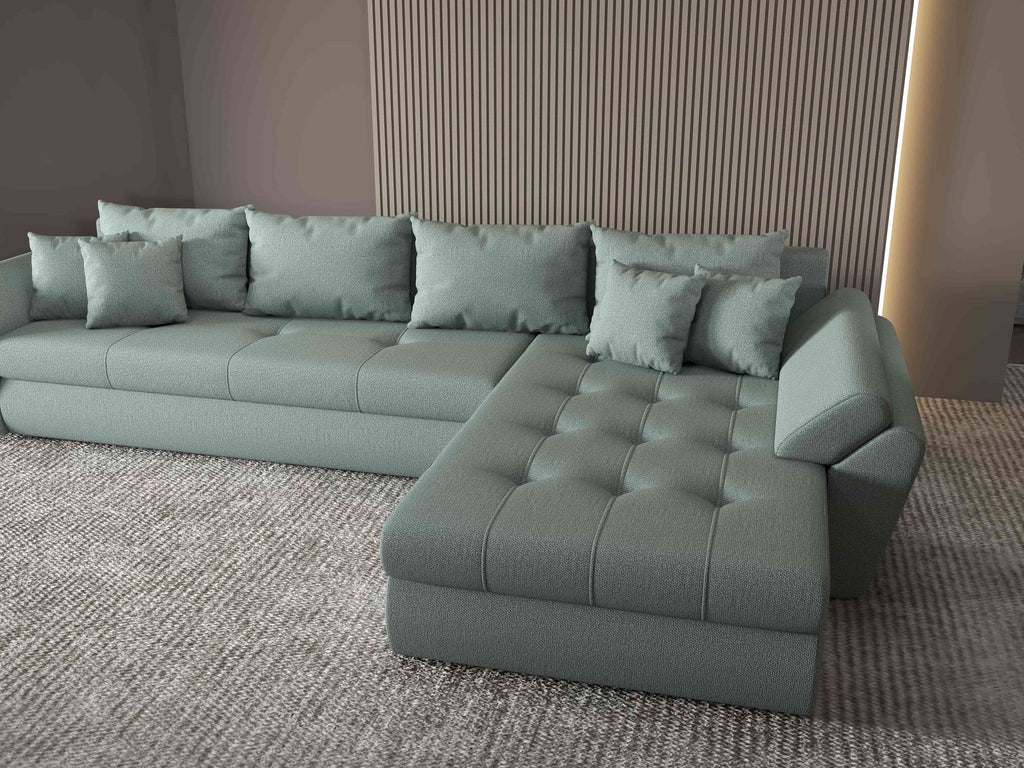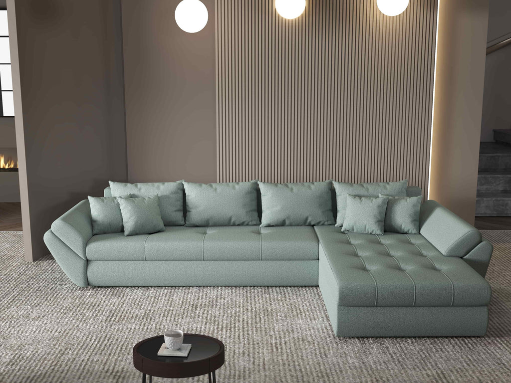Colțar extensibil dumonde cu ladă de depozitare si sezut confortabil din spuma HR, Loana XL Enjoy Mint II 335x185 cm