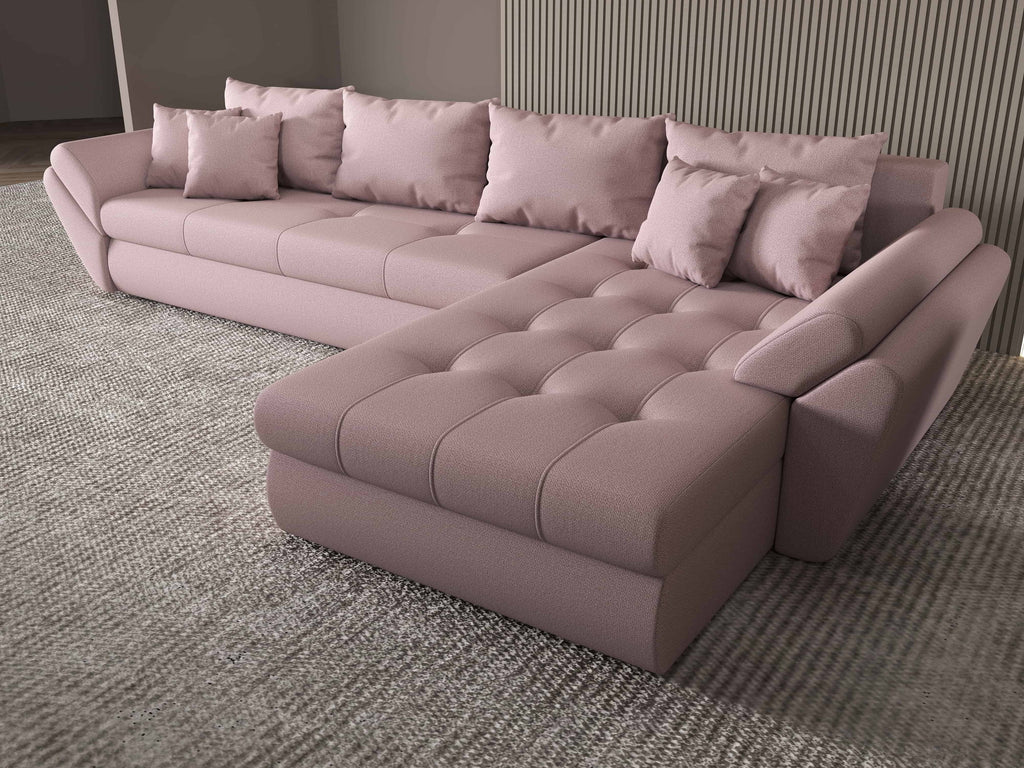 Colțar extensibil dumonde cu ladă de depozitare si sezut confortabil din spuma HR, Loana XL Enjoy Flamingo II 335x185 cm
