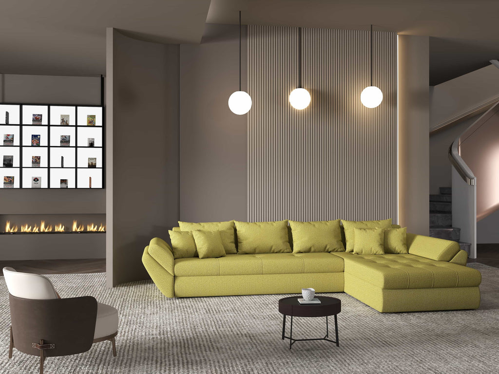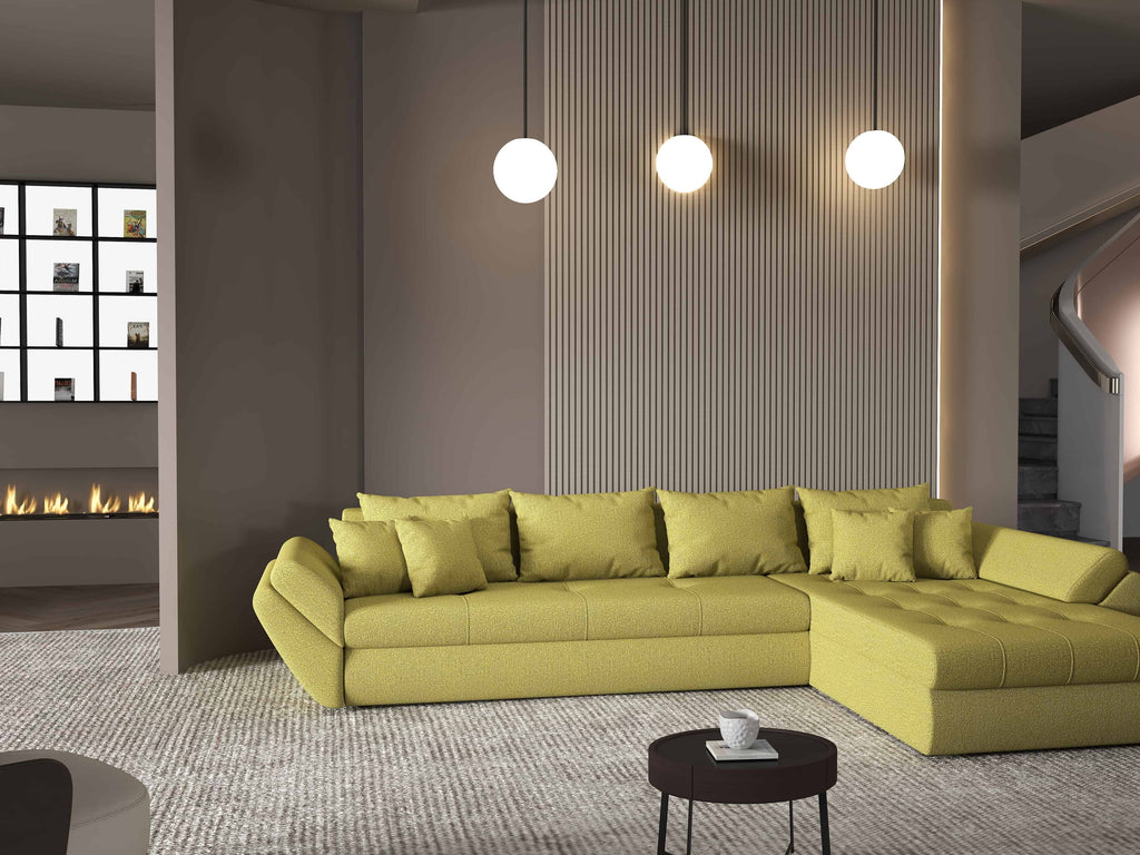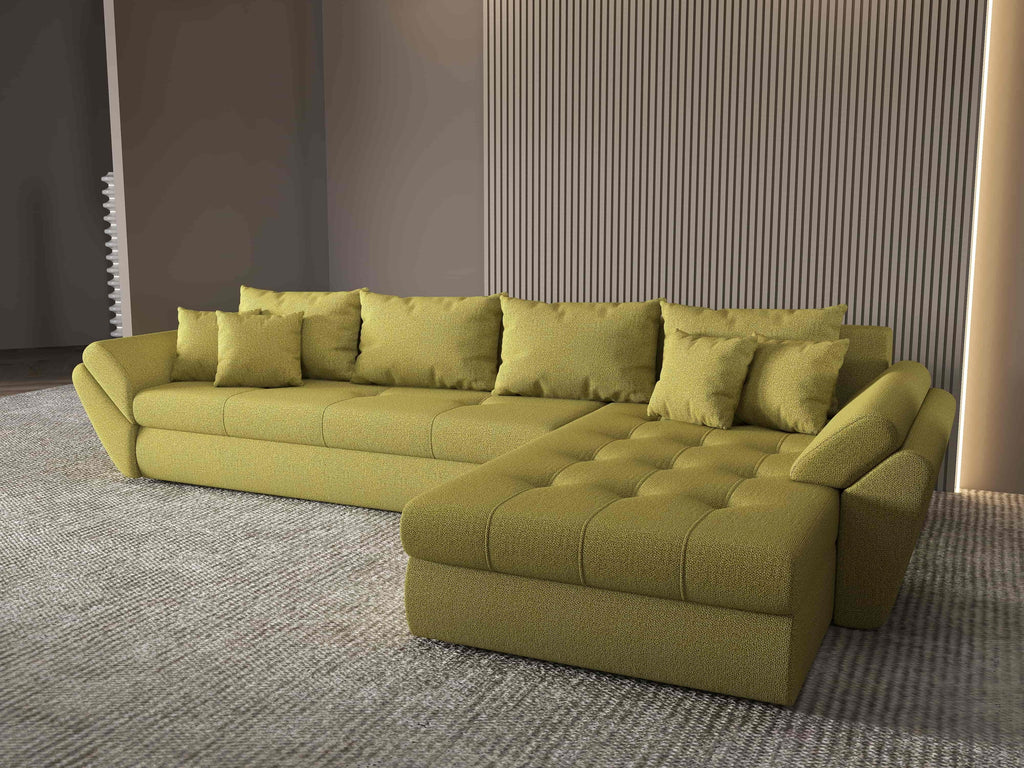 Colțar extensibil dumonde cu ladă de depozitare si sezut confortabil din spuma HR, Loana XL Enjoy Verde II 335x185 cm