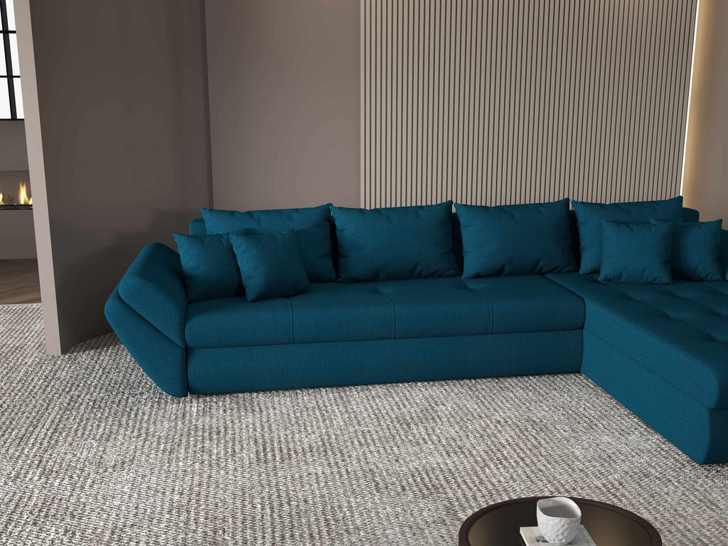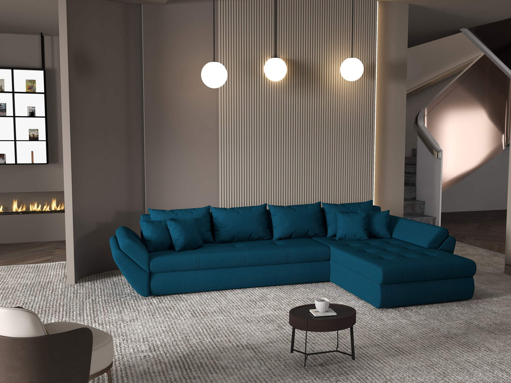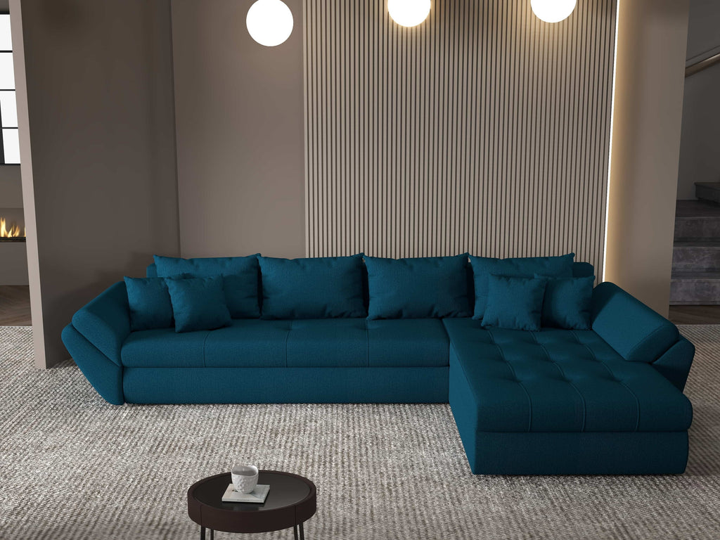 Colțar extensibil dumonde cu ladă de depozitare si sezut confortabil din spuma HR, Loana XL Enjoy Petrol II 335x185 cm
