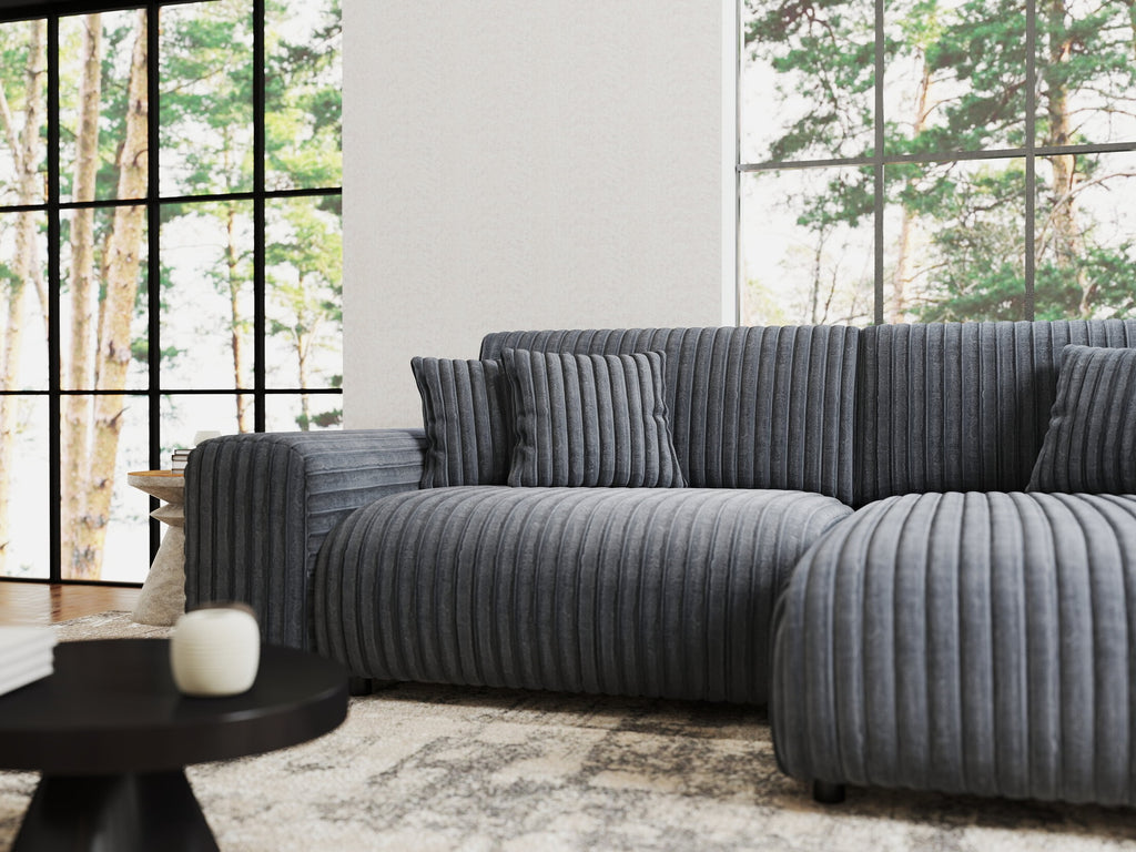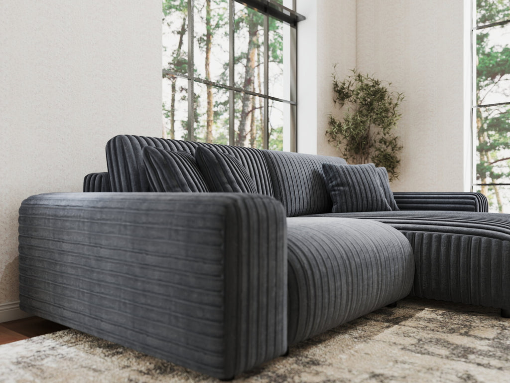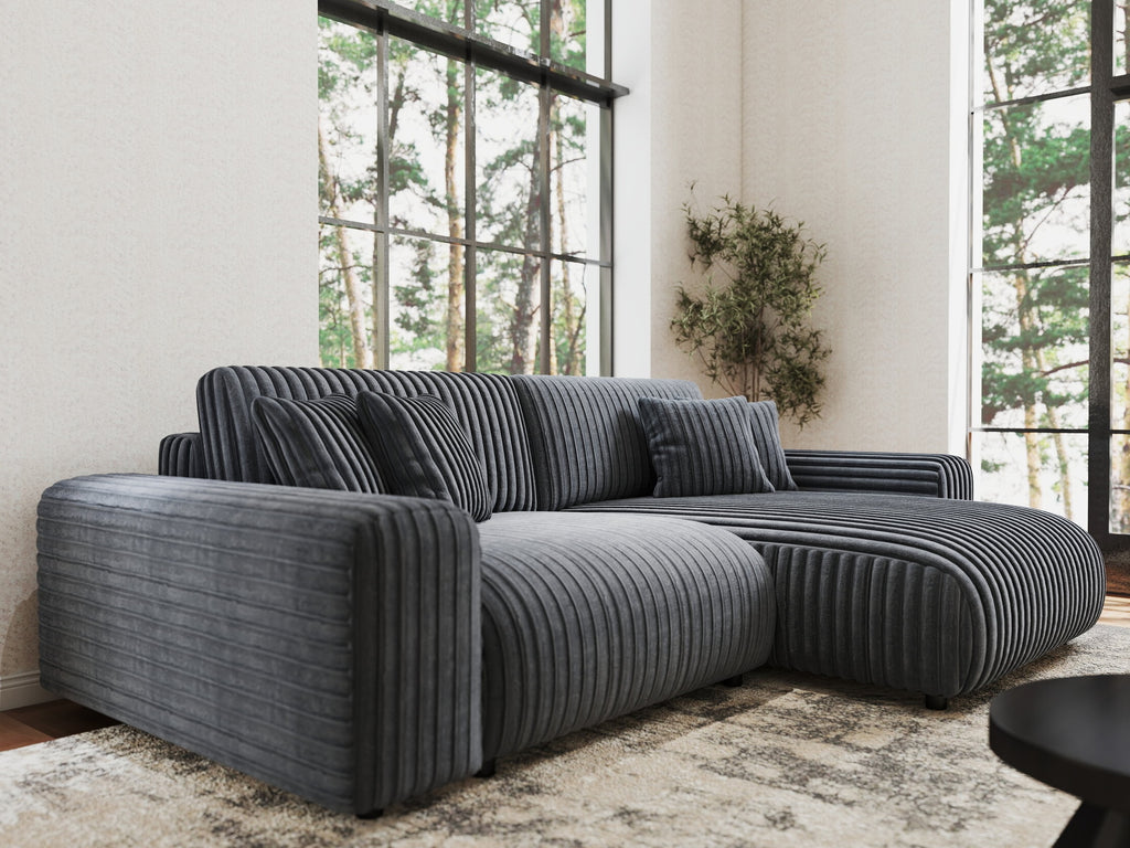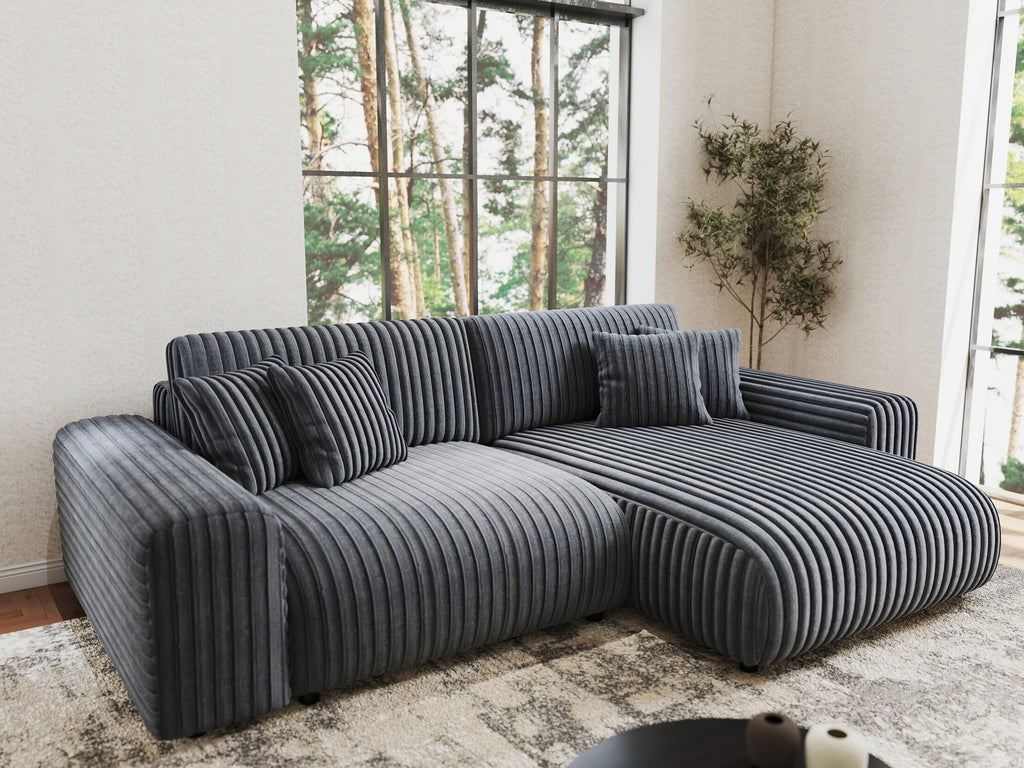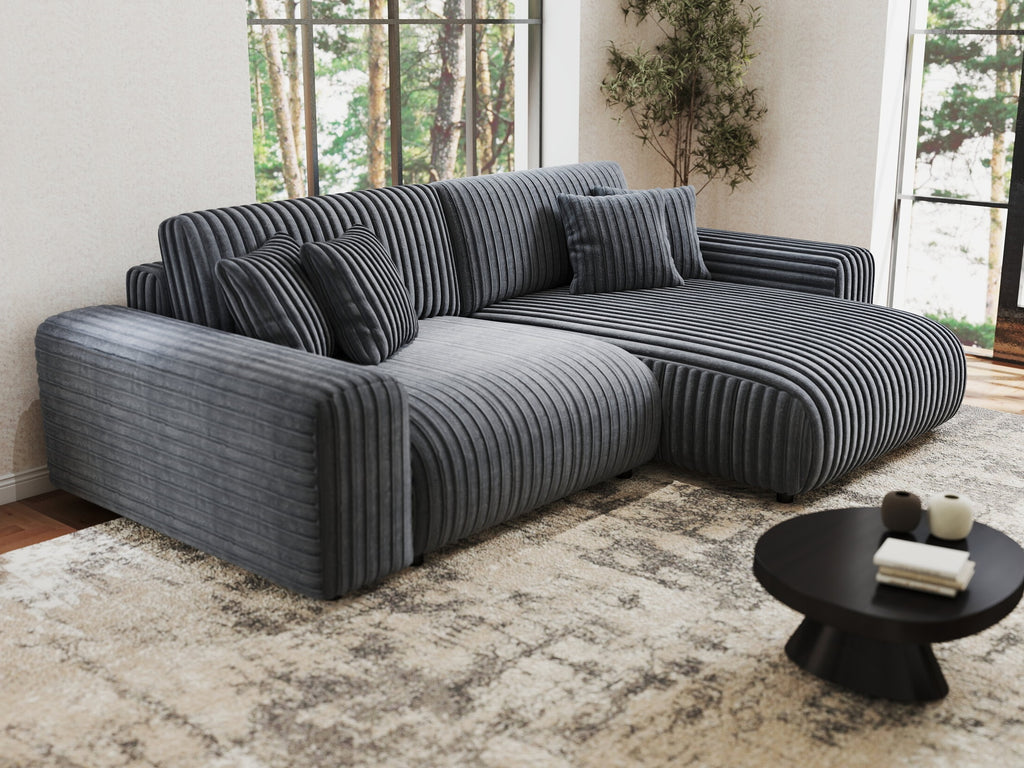 Colțar extensibil dumonde cu ladă de depozitare si sezut confortabil din spuma HR, Sarina Ambience Gri 255x168 cm II