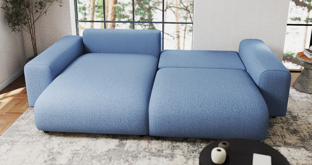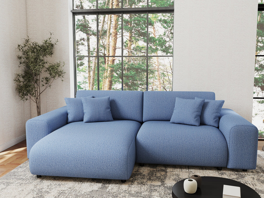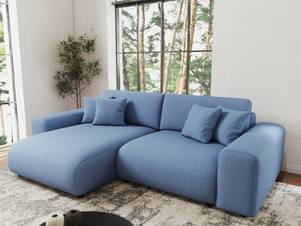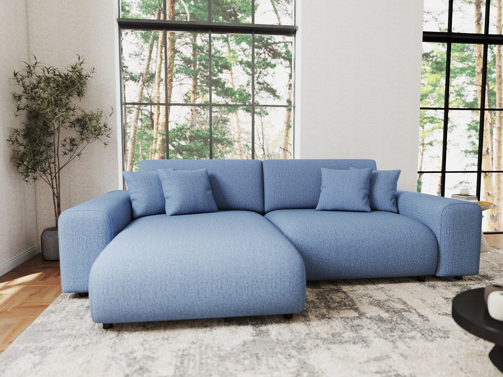 Colțar extensibil dumonde cu ladă de depozitare si sezut confortabil din spuma HR, Sarina Enjoy Albastru 255x168 cm