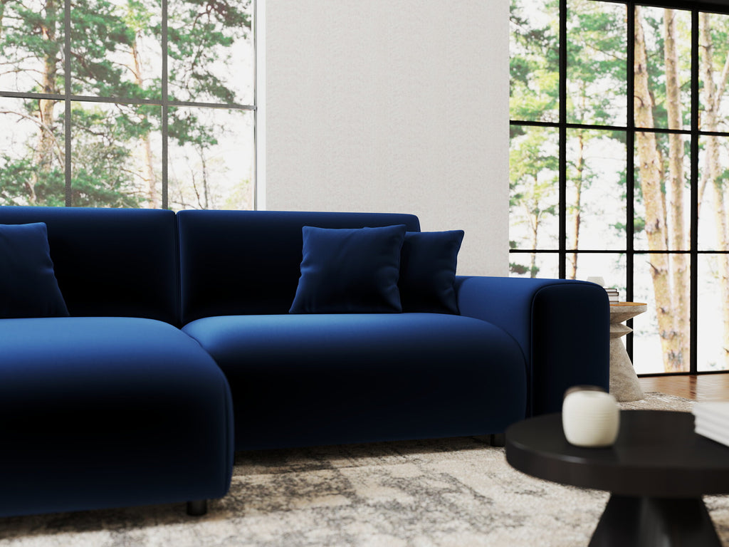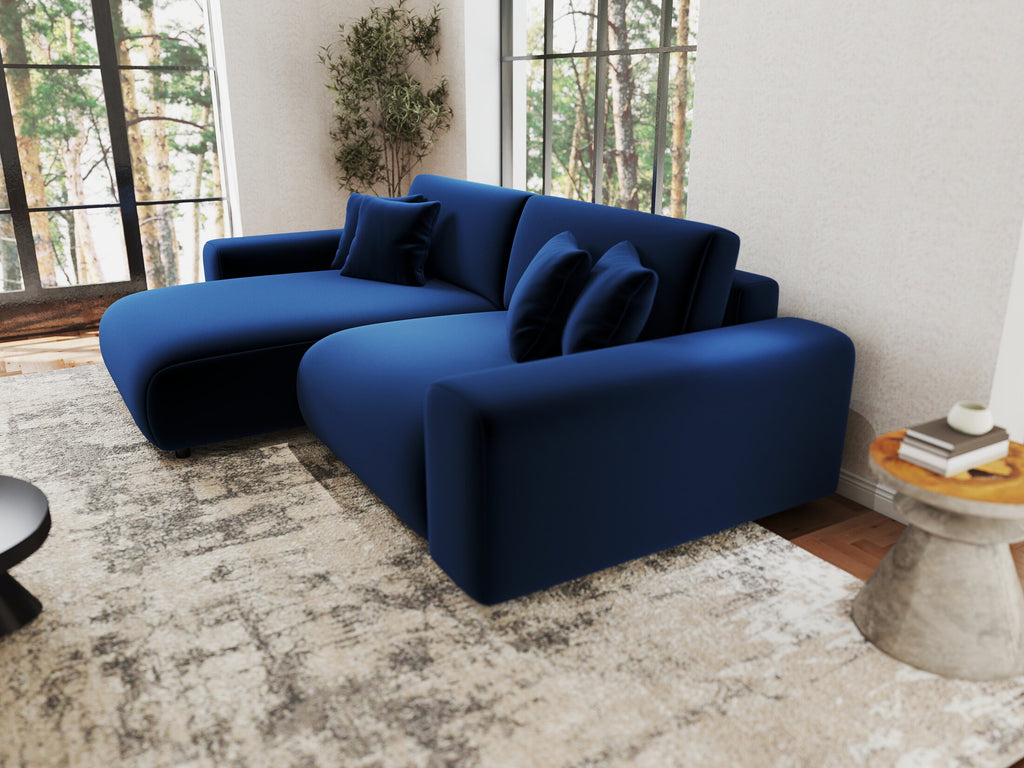 Colțar extensibil dumonde cu ladă de depozitare si sezut confortabil din spuma HR, Sarina Royal Albastru Navy 255x168 cm