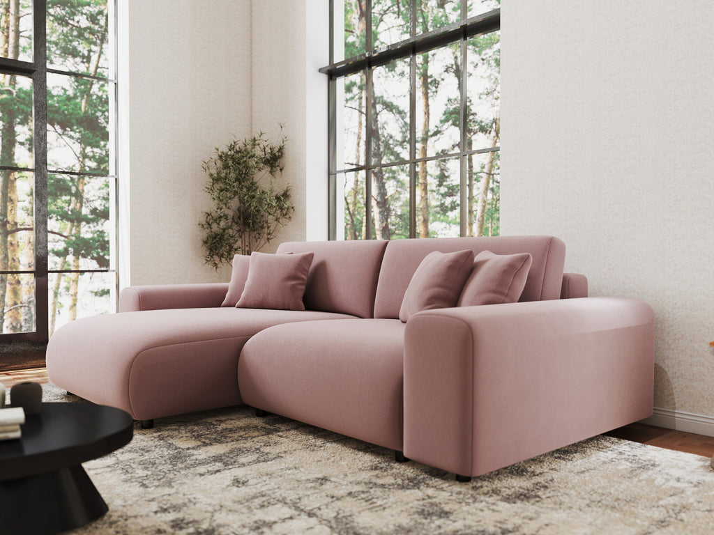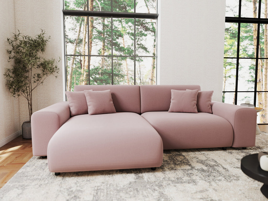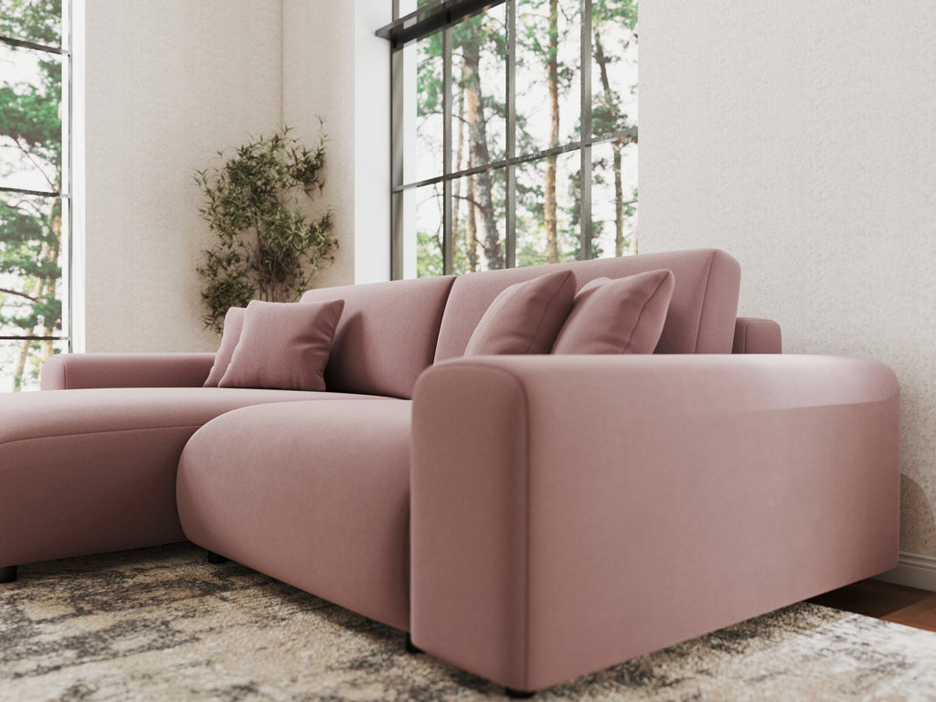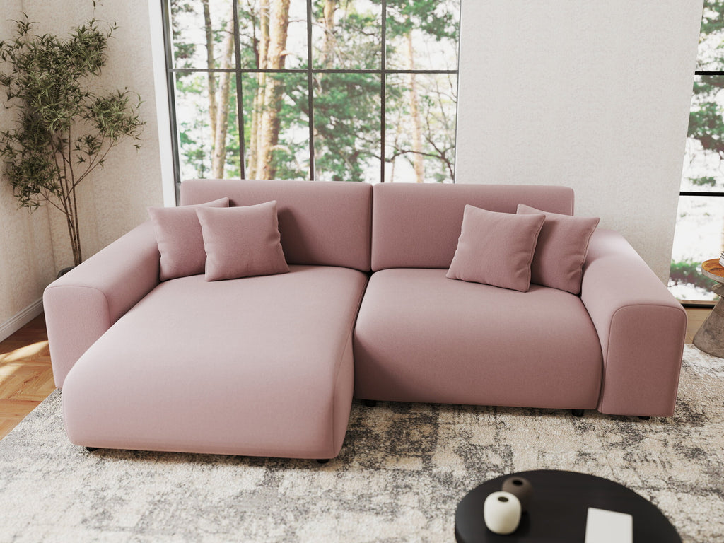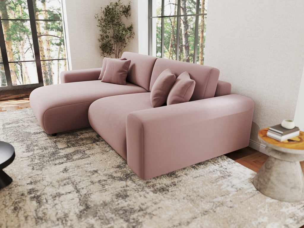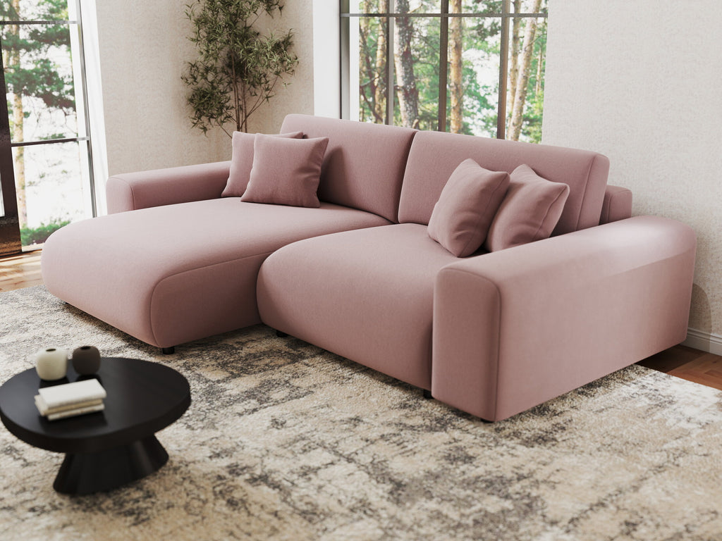 Colțar extensibil dumonde cu ladă de depozitare si sezut confortabil din spuma HR, Sarina Royal Roz 255x168 cm