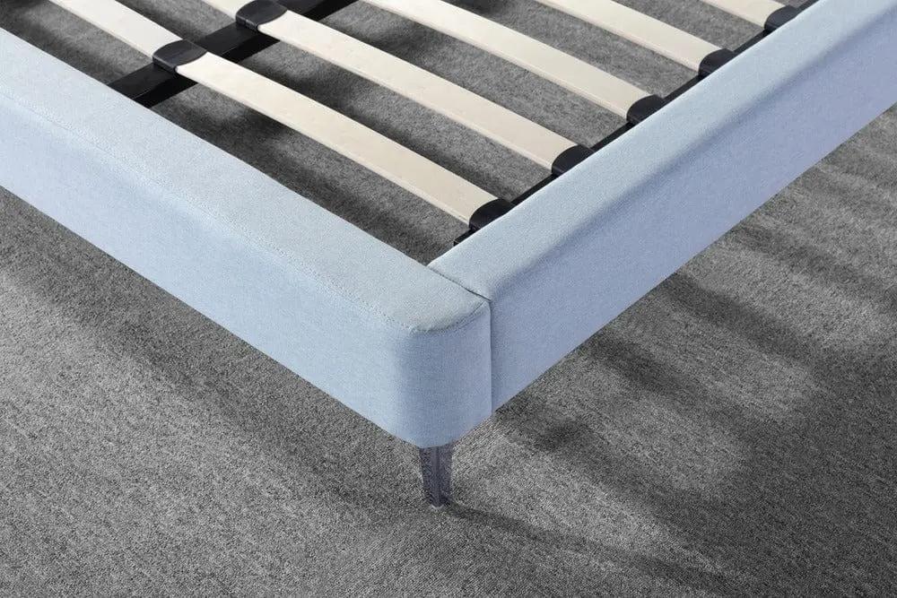 - Structura patului este completată de picioare elegante din metal cromat, care adaugă un contrast modern și o stabilitate remarcabilă. Acestea sunt proiectate să suporte greutăți considerabile și să reziste în timp, aspecte esențiale pentru durabilitatea mobilierului de dormitor.