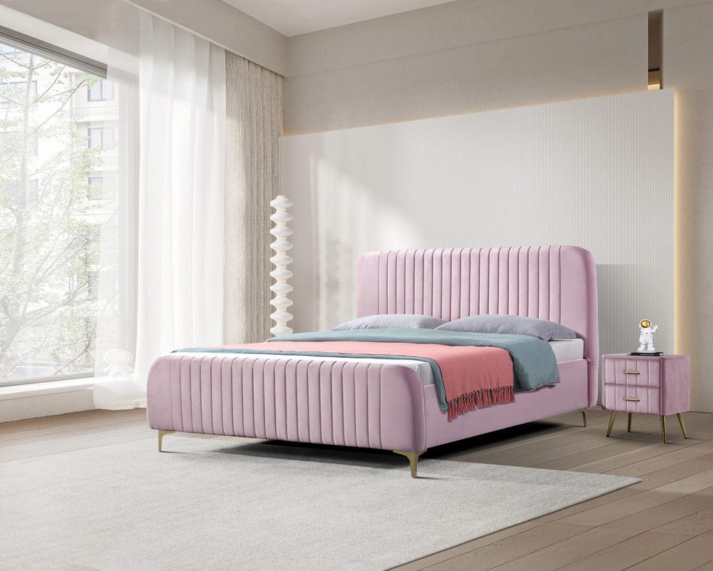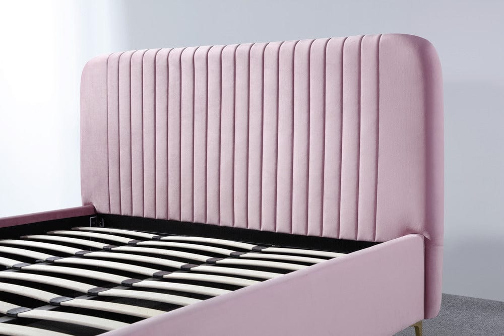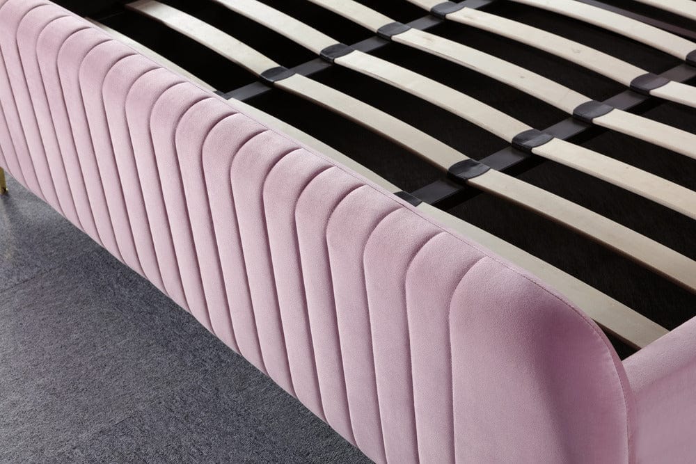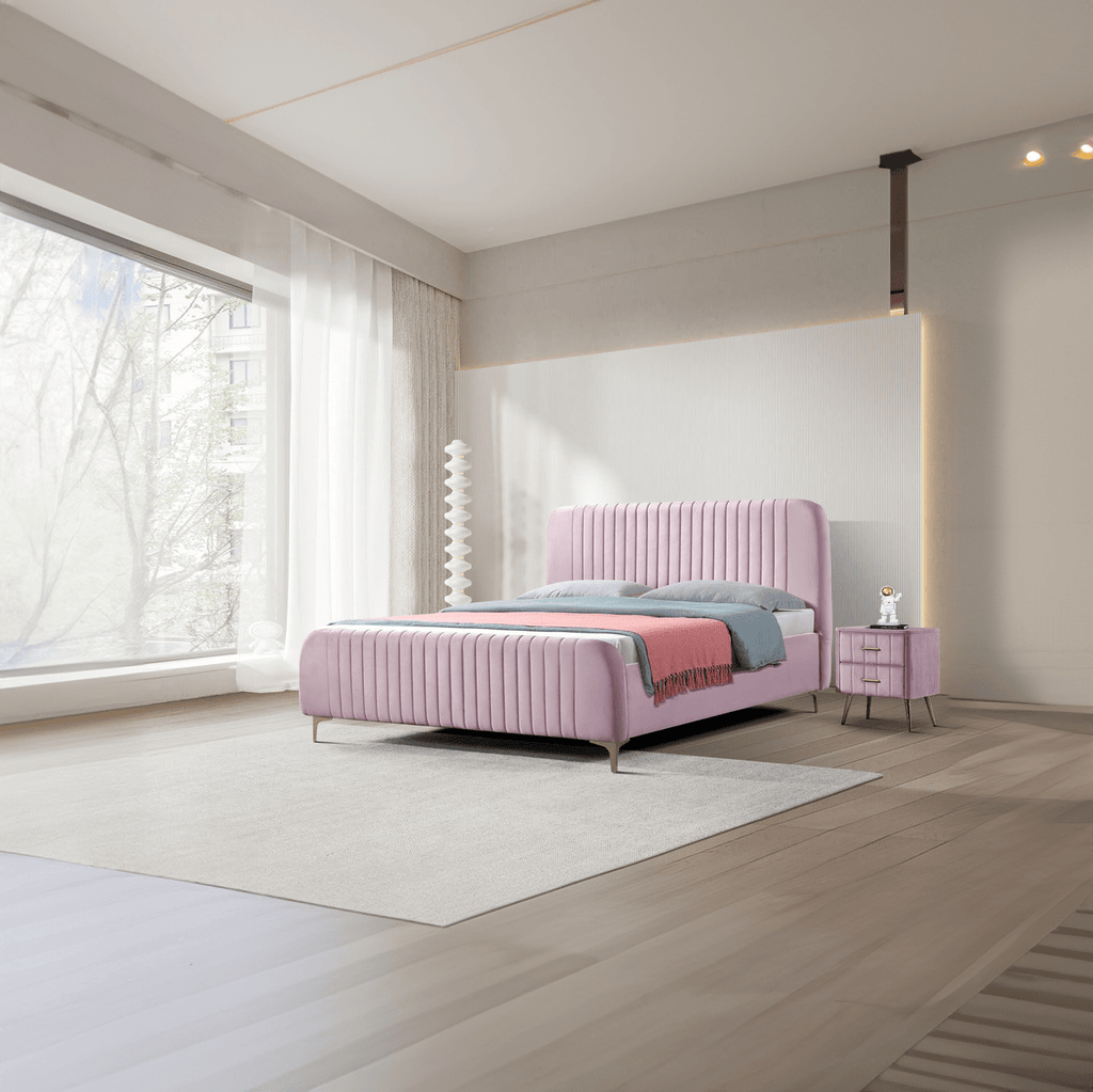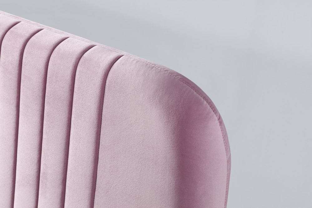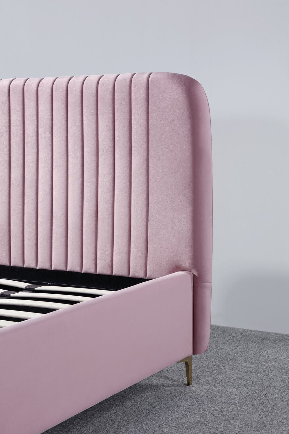 - Tapiseria în culoare roz a patului "Orlando" conferă un look proaspăt și energizant, perfect pentru a crea o atmosferă relaxantă și stilată în dormitor. Nuanța delicată și plină de viață a rozului este atent aleasă pentru a complementa o gamă largă de scheme de decor, aducând un suflu tineresc și modern camerei.
